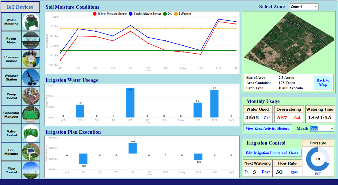 Valve Control: Many drip irrigation systems still rely on manual valve operation for irrigation. This continues to present challenges with system reliability and operational efficiency. Automating valve control creates a major leap in ease of operation and precise irrigation.
