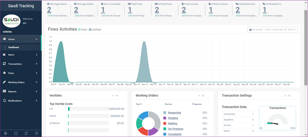 Fines Listing: The system records the fines for cars and drivers to help asses the compliance and qualify the behavior of drivers.